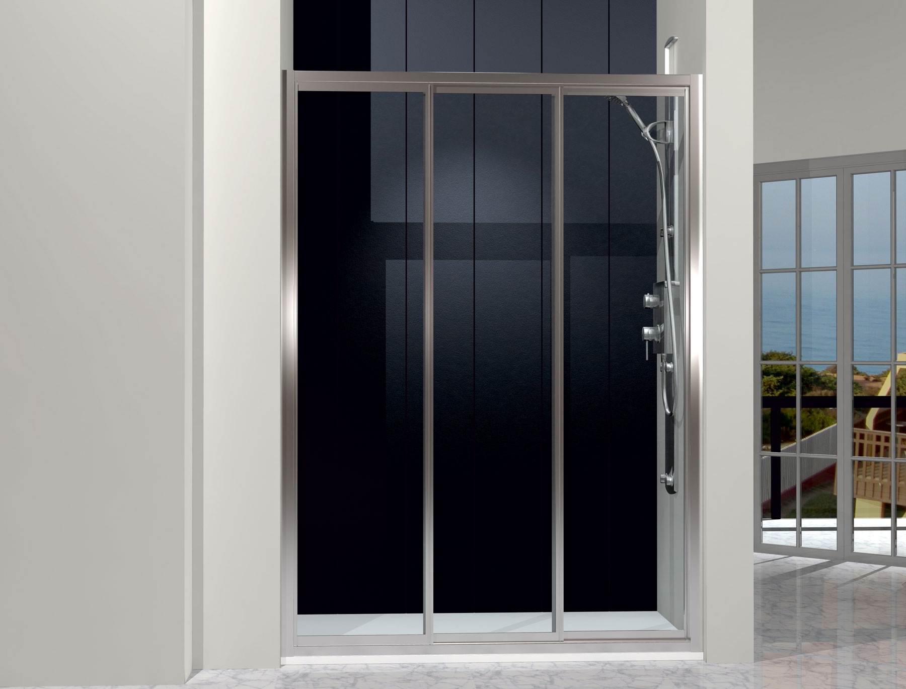 Model 2001: Shower – Front: three sliding panels – Silver