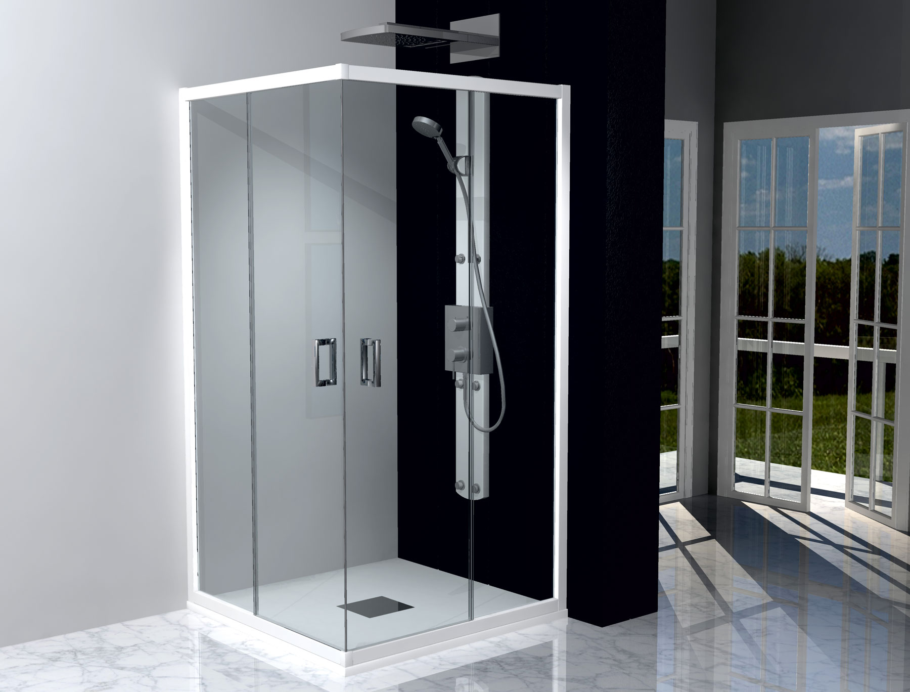 Model 205: Shower – Corner four panels: two sliding + two fixed – White