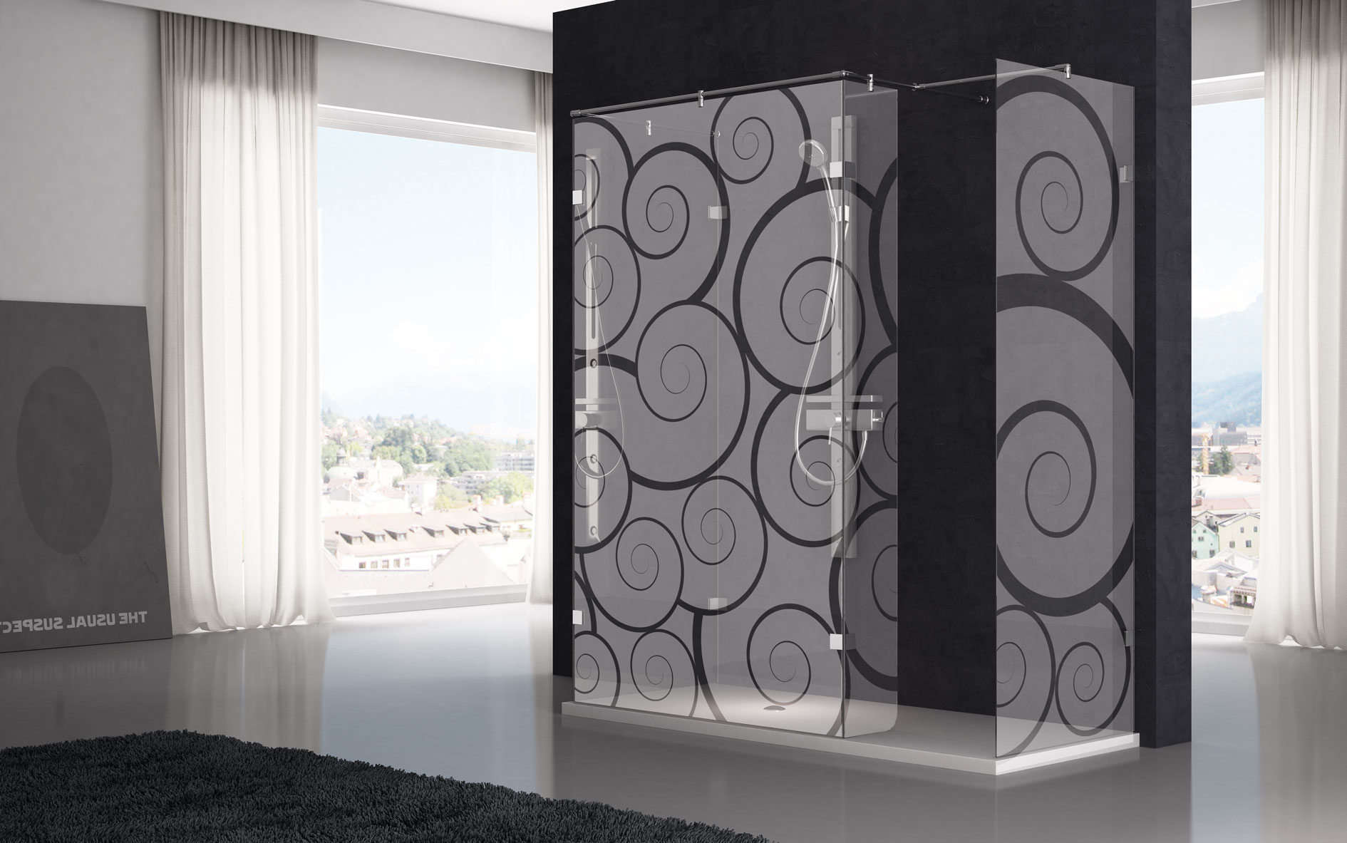 Be the first to review “Model 704: Set of four fixed panels with wall hinges and glass – Chrome”