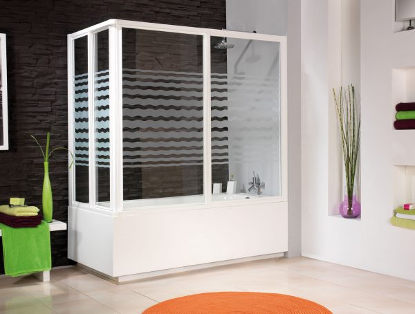 Modelo 550: Frontal baño, una hoja + fijo lateral hasta 90 cm – Blanco