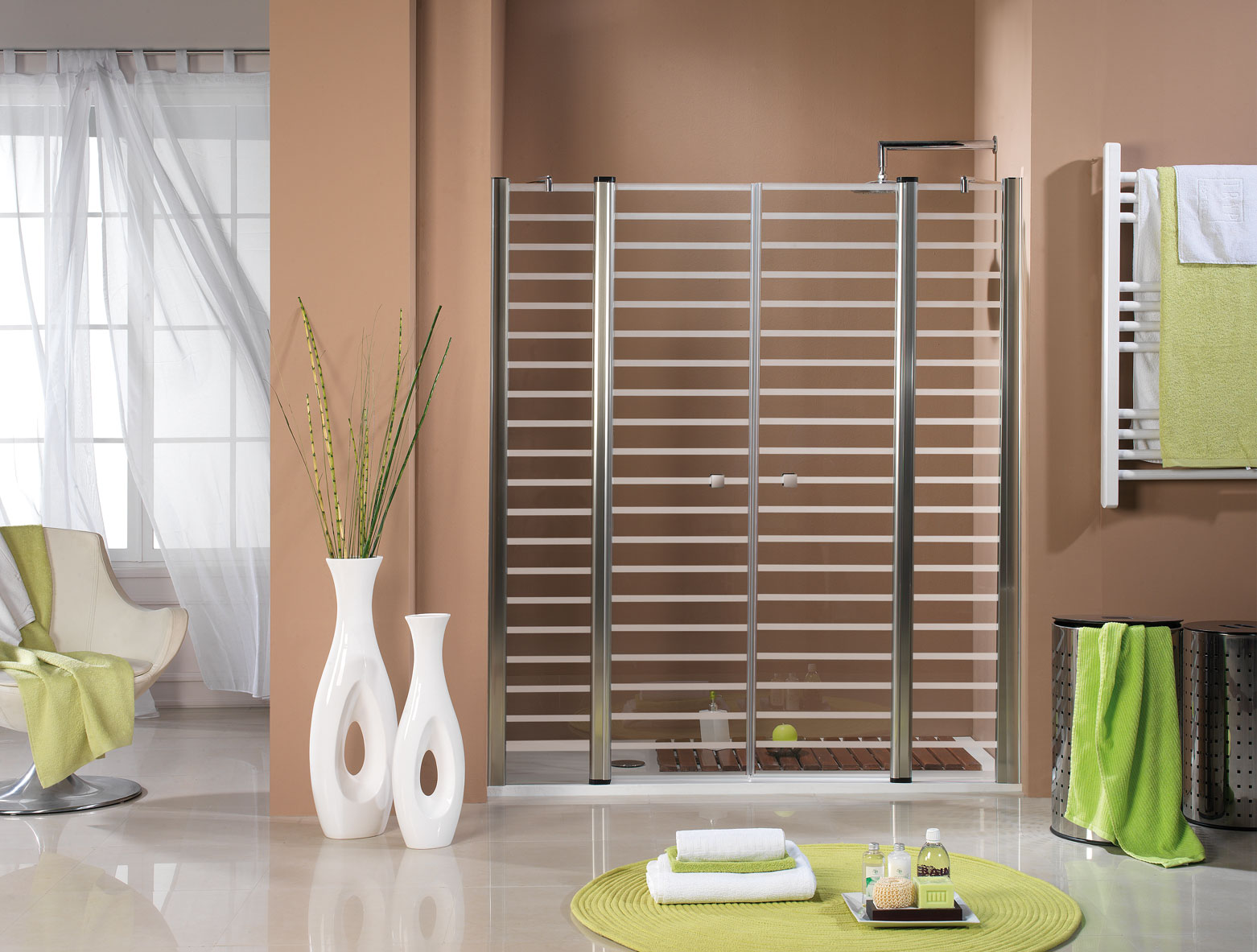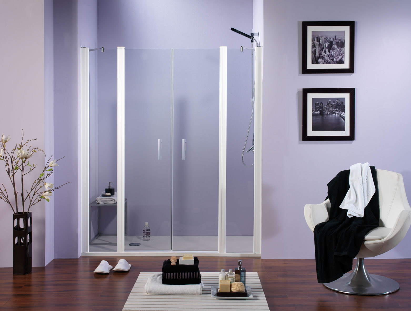 Modelo 502: Frontal ducha dos hojas, corredera + fijo – Plata