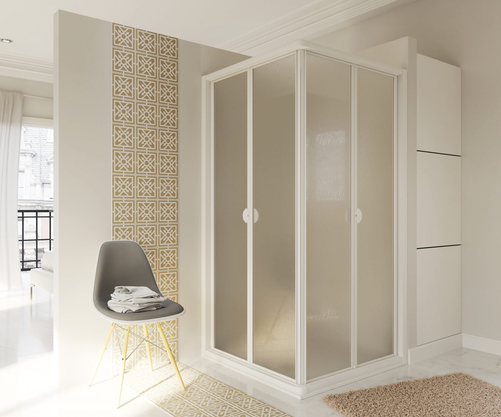 Modelo 504: Frontal ducha cuatro hojas, dos correderas + dos fijas – Blanco