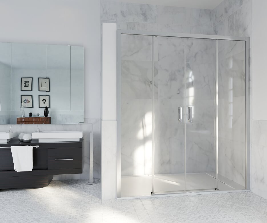 Modelo 504: Frontal ducha cuatro hojas, dos correderas + dos fijas – Plata