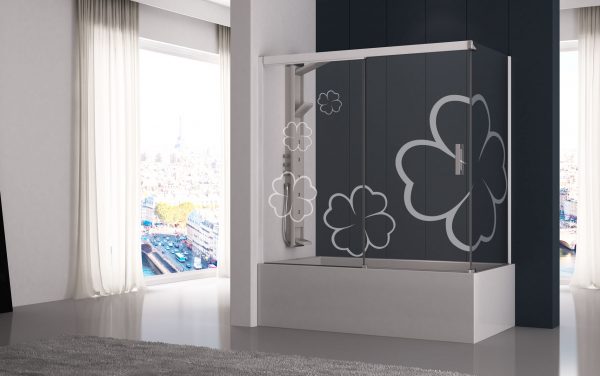 Modelo 502: Frontal ducha dos hojas, corredera + fijo – Plata