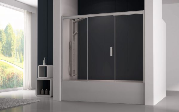 Modelo 553: Frontal baño tres hojas, una corredera + dos fijas – Plata