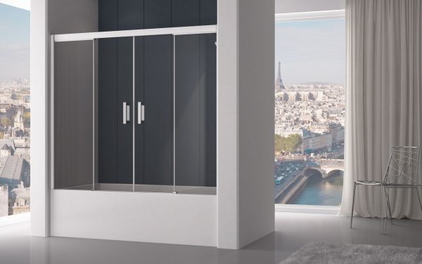 Modelo 654: Frontal baño cuatro hojas, dos correderas + dos fijas – Cromo