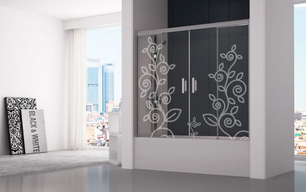 Modelo 554: Frontal baño cuatro hojas, dos correderas + dos fijas – Plata