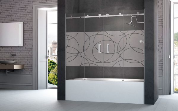 / Modelo 654: Frontal baño cuatro hojas, dos correderas + dos fijas – Cromo