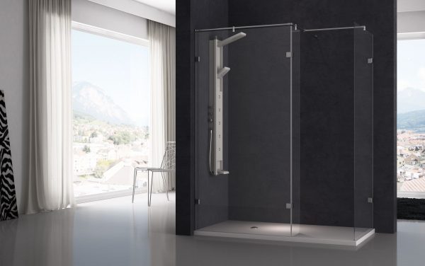 Modelo 802: Frontal ducha hoja abatible sin cierre + fijo continuo – Plata