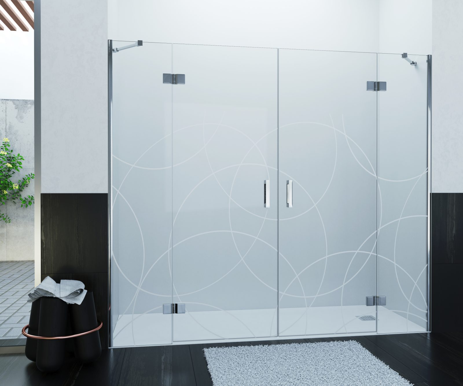 Modelo 803: Frontal ducha dos hojas abatibles + dos fijos continuos – Plata