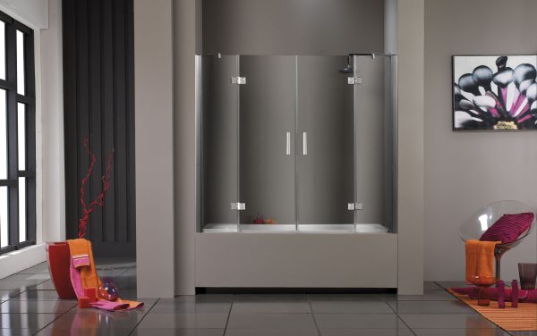 Modelo 852: Frontal baño dos hojas abatibles + dos fijos continuos – Plata