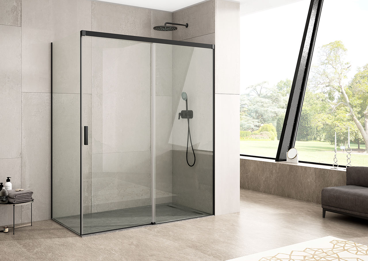 Frontal Ducha Hoja corredera + hoja fija + Fijo Lateral hasta 90 cms