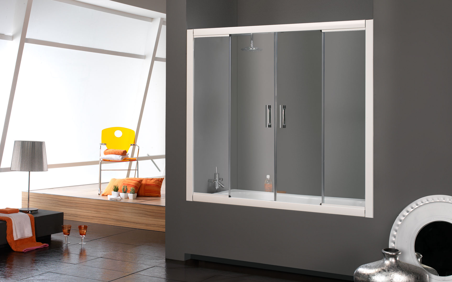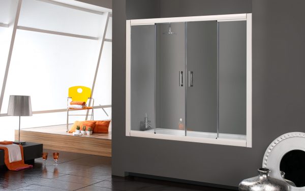 Modelo 654: Frontal baño cuatro hojas, dos correderas + dos fijas – Cromo