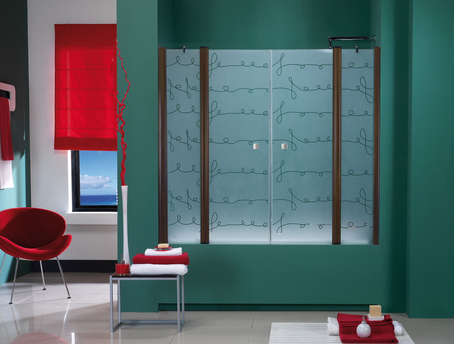 Modèle 3054 : Frontal bain, deux portes pivotantes + 2 parois fixes en alignement