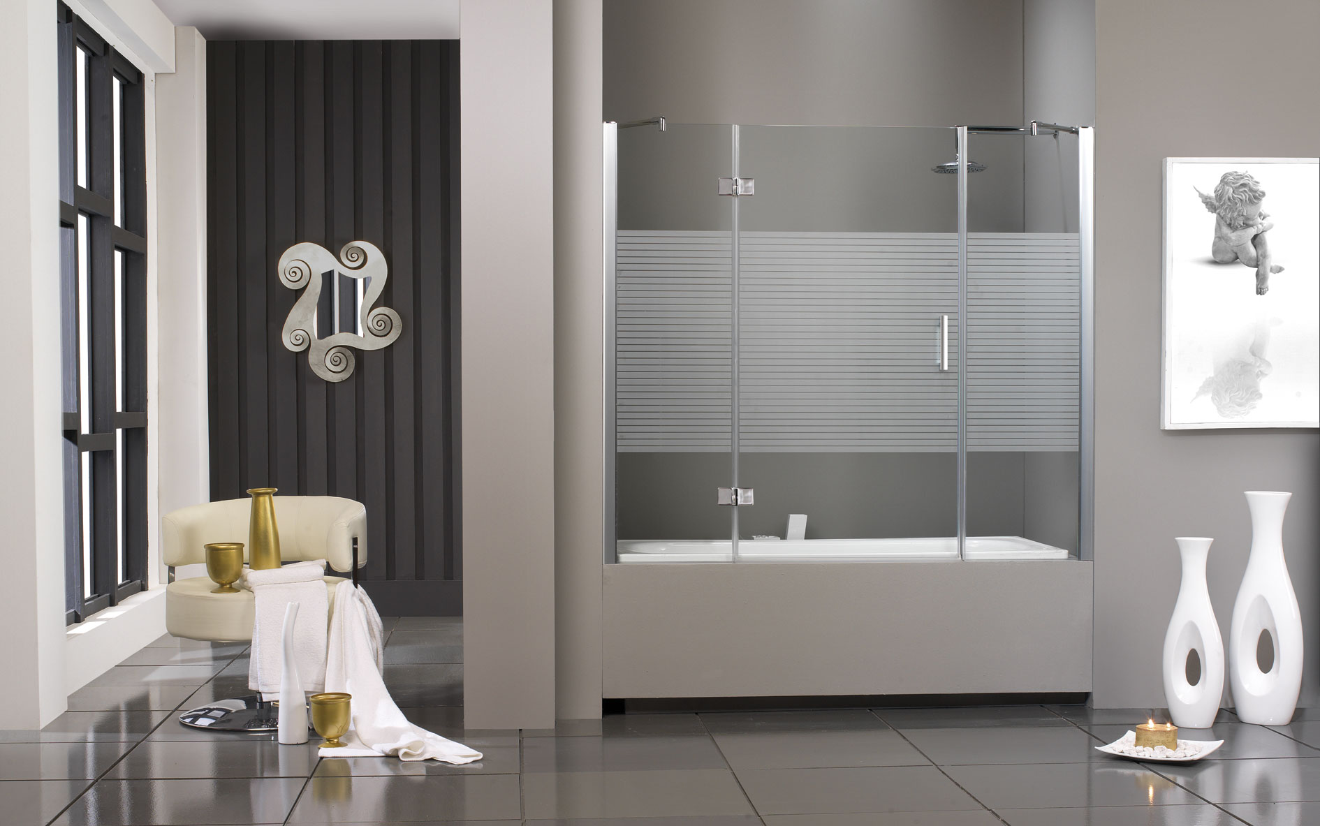 Soyez le premier à laisser votre avis sur “Modèle 851 : Frontal bain, porte pivotante + 2 parois fixes en alignement- Argent”