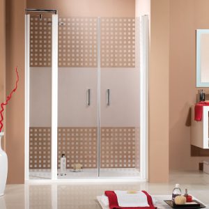 Model 3008: Douchewand front twee x klapdeur + vast doorlopend 35 cm