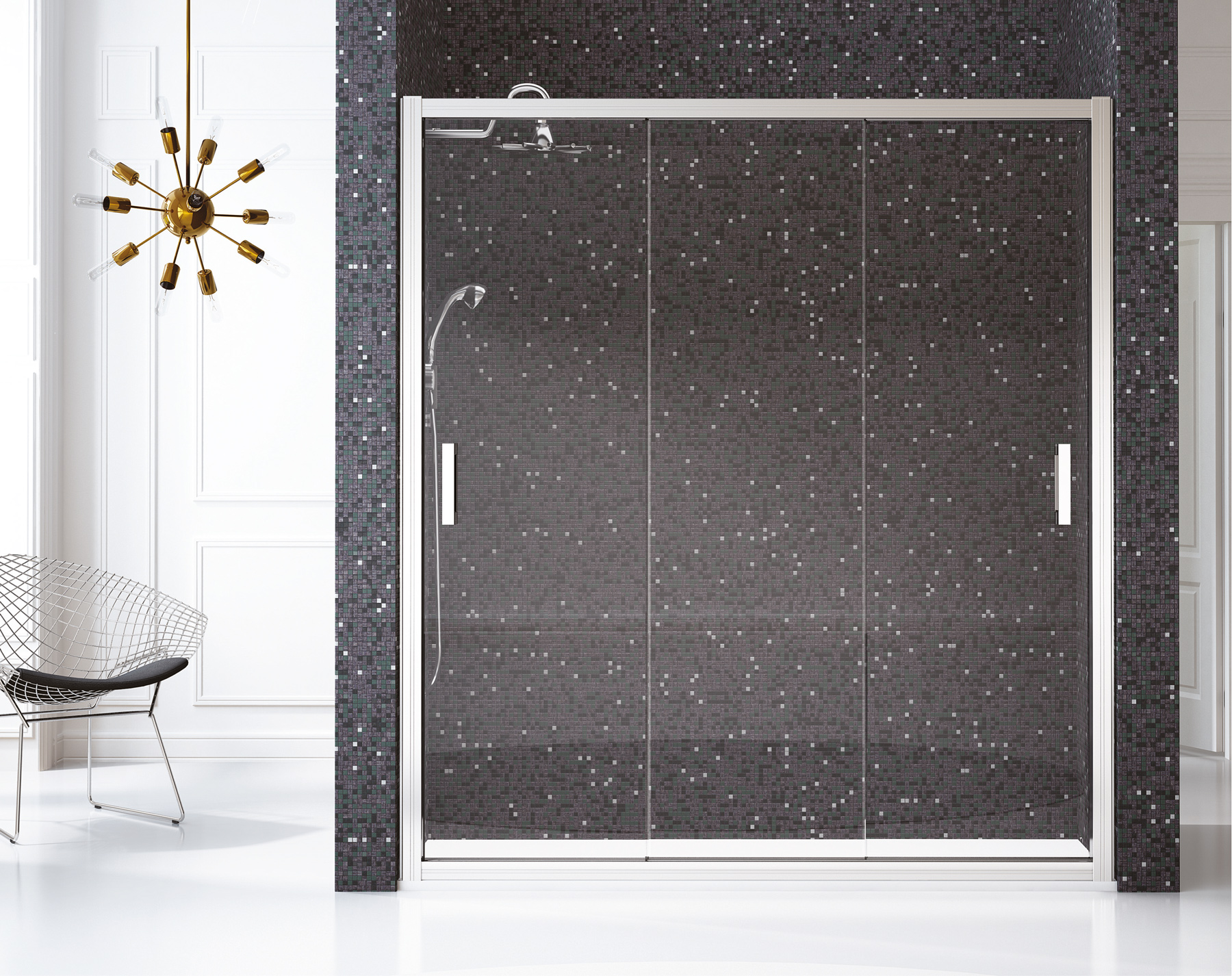 Model 400: Douchewand front drie x schuifdeur – Zilver of wit