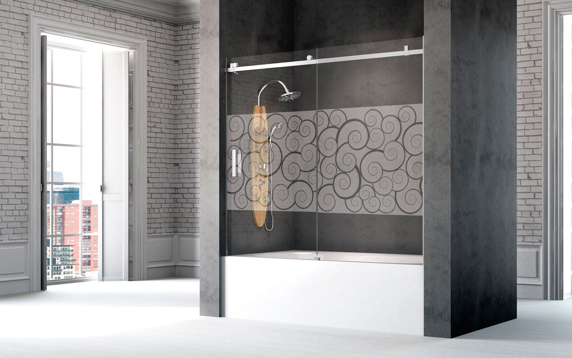 Model 652: Badwand front twee platen, schuifdeur + vast – Chroom