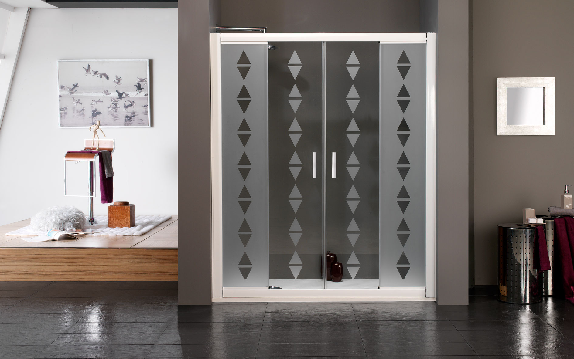 Model 903: Douchewand front vier platen, twee x schuifdeur + twee x vast