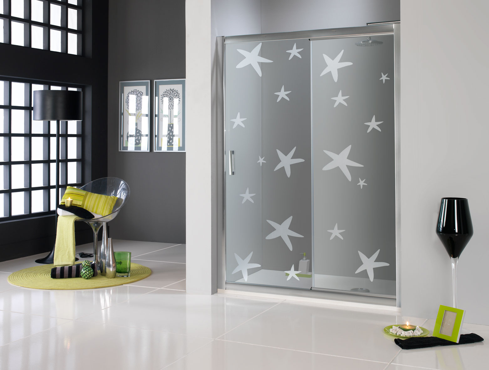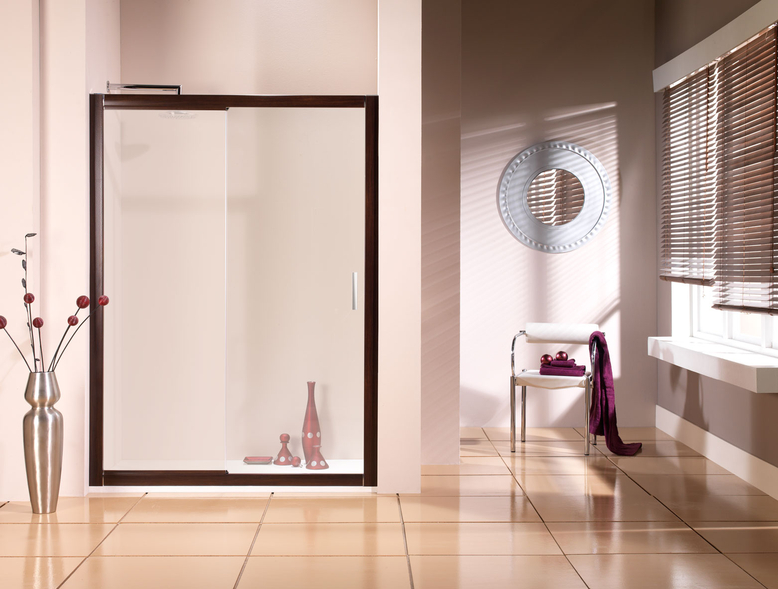 Model 904: Douchewand front twee platen, schuifdeur + vast